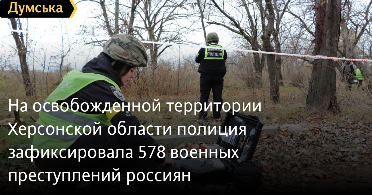 На звільненій території Херсонської області поліція зафіксувала 578 воєнних злочинів росіянСпівробітники Національної поліції продовжують заходи щодо стабілізації ситуації у нещодавно звільненому Херсоні та на правобережжі Херсонської області. У Національній поліції повідомили, що лише на території обласного центру постійно несуть службу 850 поліцейських, за порядком на вулицях стежать 44 автомобільних та піших патрулі. Це, зокрема, правоохоронці з Кіровоградської, Одеської, Черкаської та Дніпропетровської областей. На території Херсонської області вже відновили роботу сім підрозділів поліції, з них чотири у Херсоні. Правоохоронці фіксують військові злочини, вчинені росіянами під час окупації. На даний момент виявлено 578 таких епізодів. Крім того, поліцейські вибухотехніки щодня очищають Херсонщину від ворожих мін, боєприпасів та іншої вибухівки. Вони обстежили вже майже 450 гектарів та вилучили понад 3,5 тисячі вибухонебезпечних предметів. СМЕРТЬ РОСІЙСЬКИМ ОКУПАНТАМ! Помітили помилку? Виділяйте слова з помилкою та натискайте control-enter |