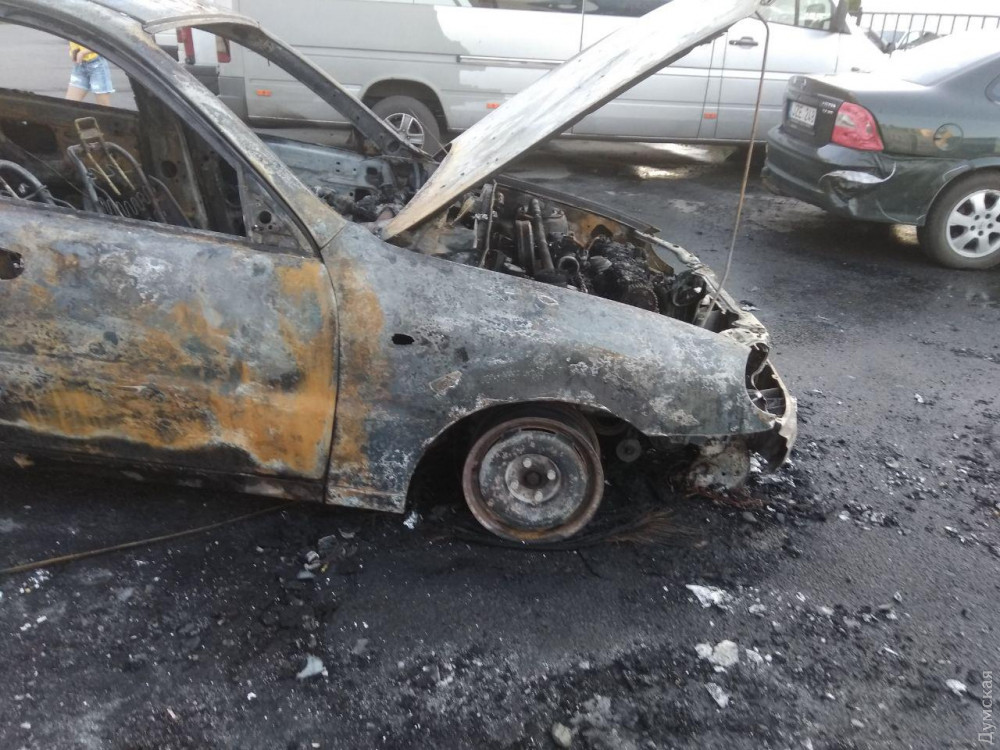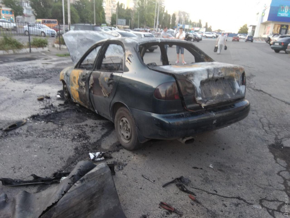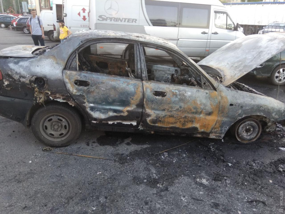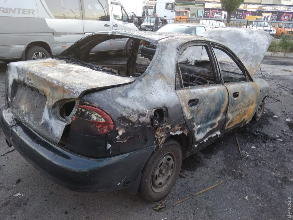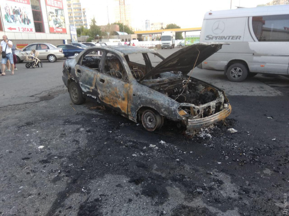 Автомобиль «Дэу» сгорел сегодня вечером на парковке торгового центра, расположенного на улице Семена Палия.