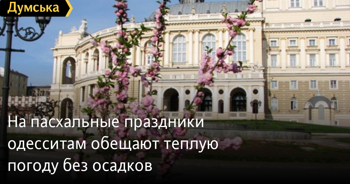 На пасхальные праздники в Одессе ожидается сухая и по-весеннему теплая погода. Днем столбик термометра поднимется до плюс 19 градусов, ночью — до плюс 9. Об этом сообщил Гидрометцентр Черного и Азовского морей.