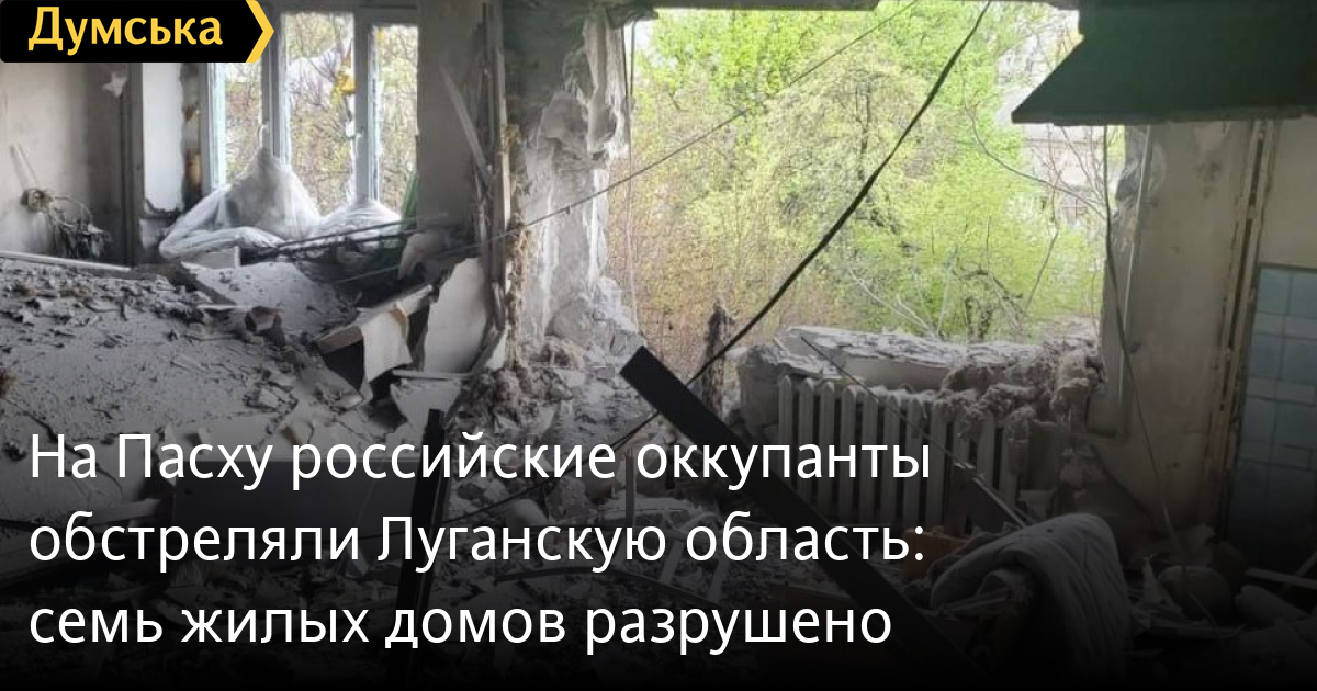 Российские оккупанты не остановили свою преступную деятельность даже в день празднования Пасхи и вновь обстреляли Луганскую область. В результате разрушены семь жилых домов.