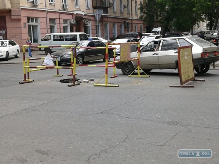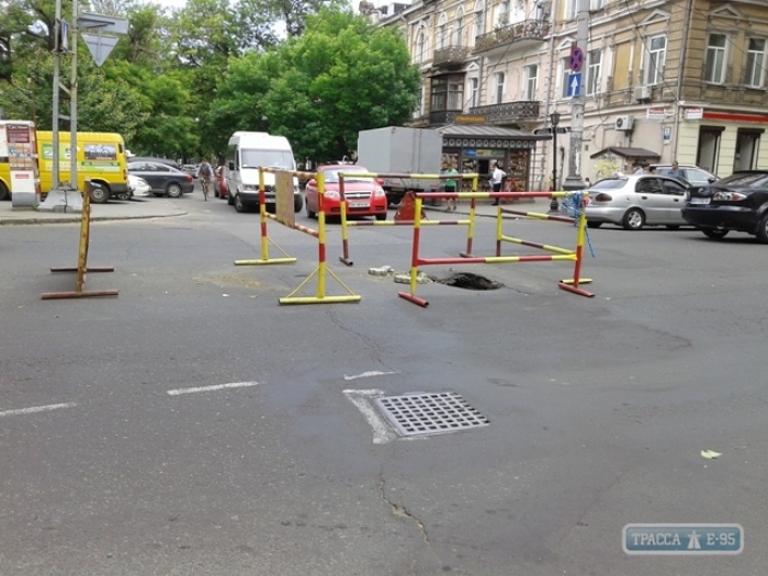 На перекрестке в центре Одессы затруднено движение из-за провала