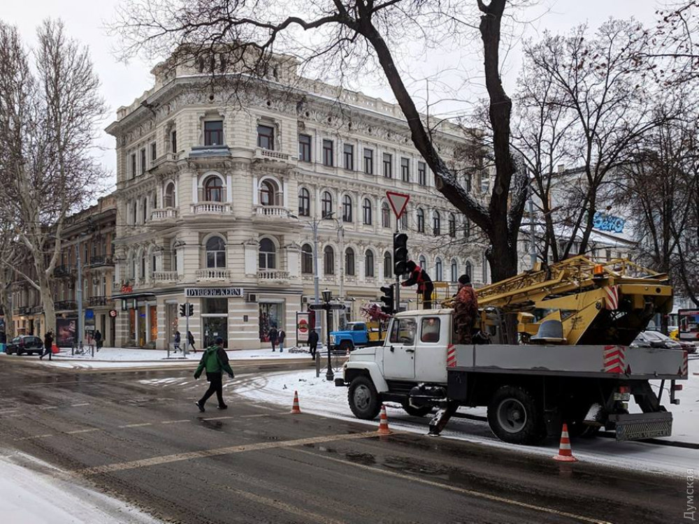 Сотрудники КП «СМЭП» установили новые светофоры на углу Греческой и Ришельевской.