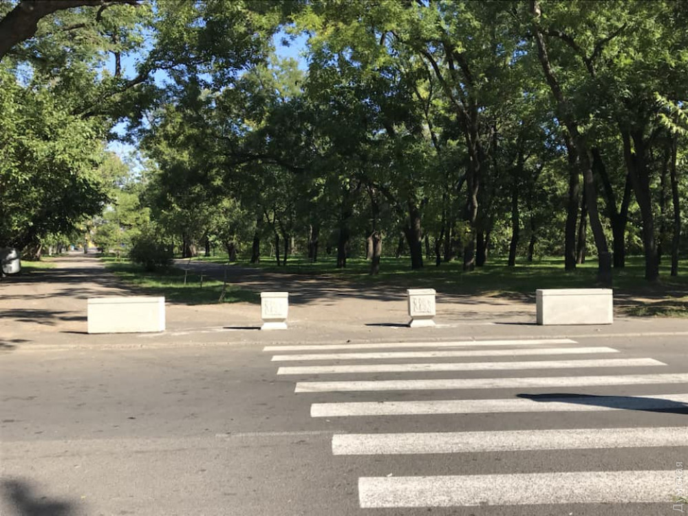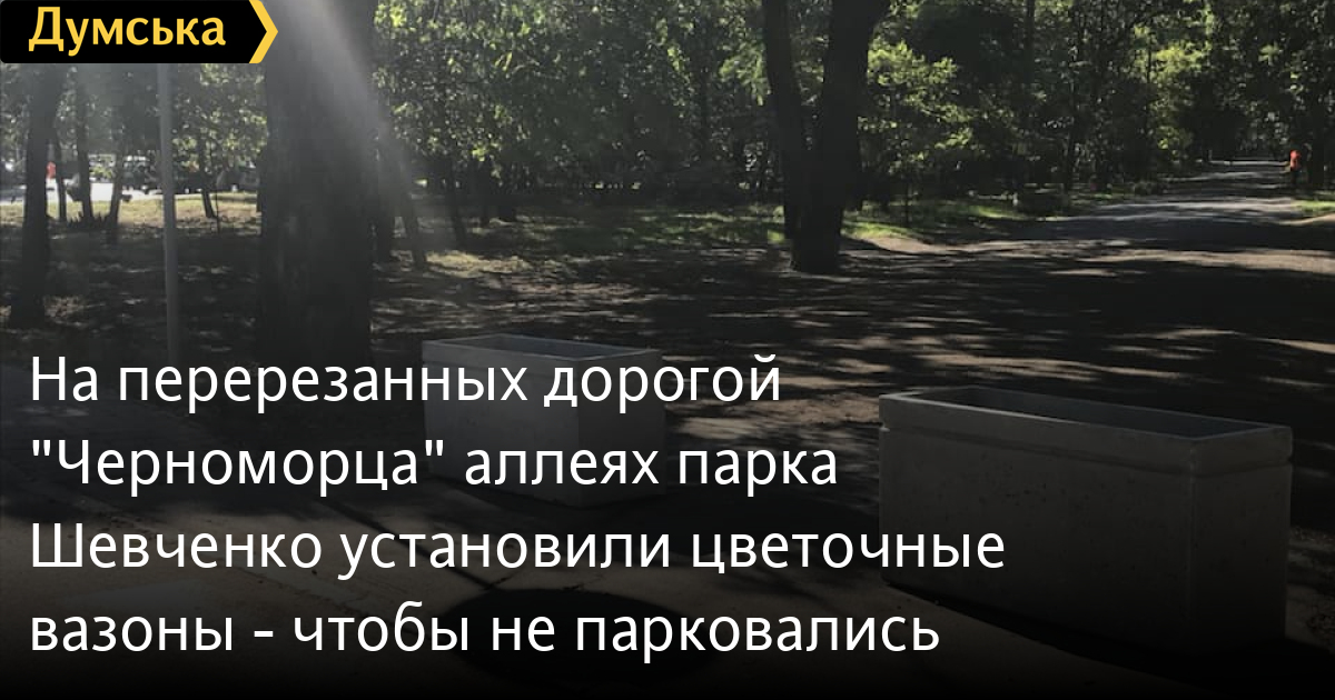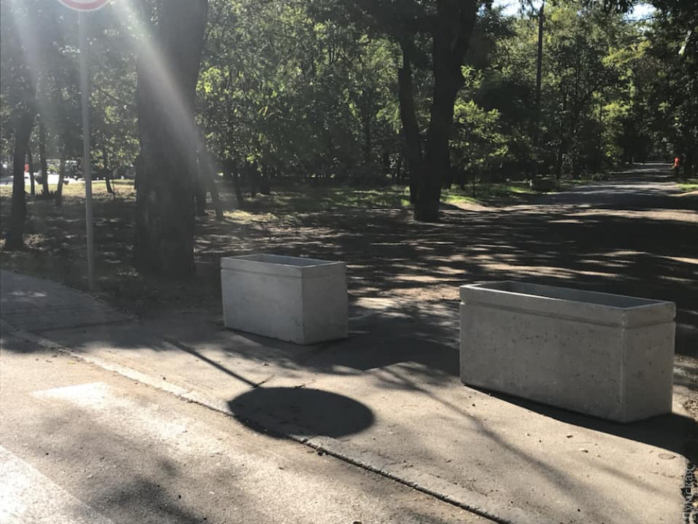 Бетонные вазоны установили на аллеях парка Шевченко, которые разрезает дорога, ведущая к стадиону и бизнес-центру «Черноморец».