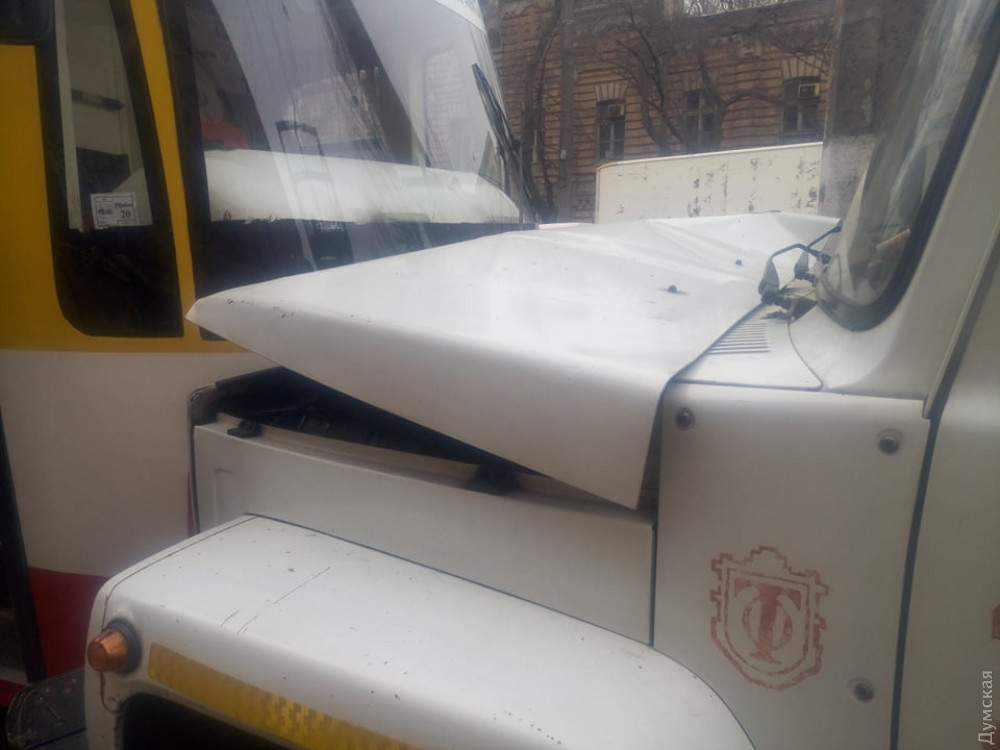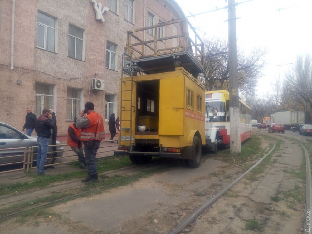 Как сообщили «Думской» очевидцы, вагон врезался в автомобиль службы энергогосподарства КП «Одесгорэлектротранс», работники которой ремонтировали контактную сеть.