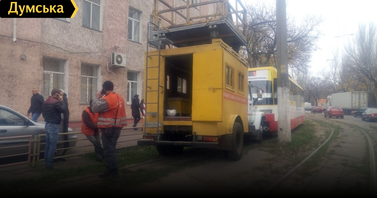 Как сообщили «Думской» очевидцы, вагон врезался в автомобиль службы энергогосподарства КП «Одесгорэлектротранс», работники которой ремонтировали контактную сеть.