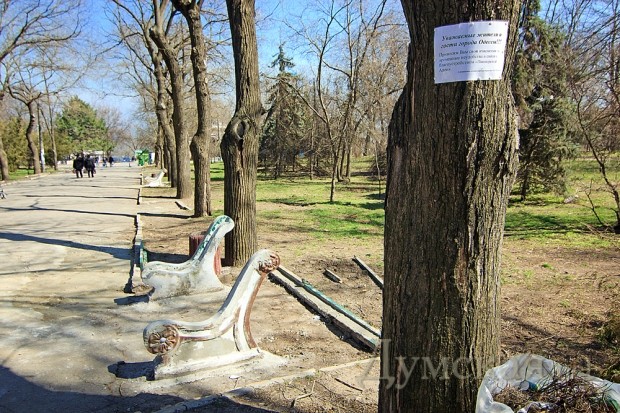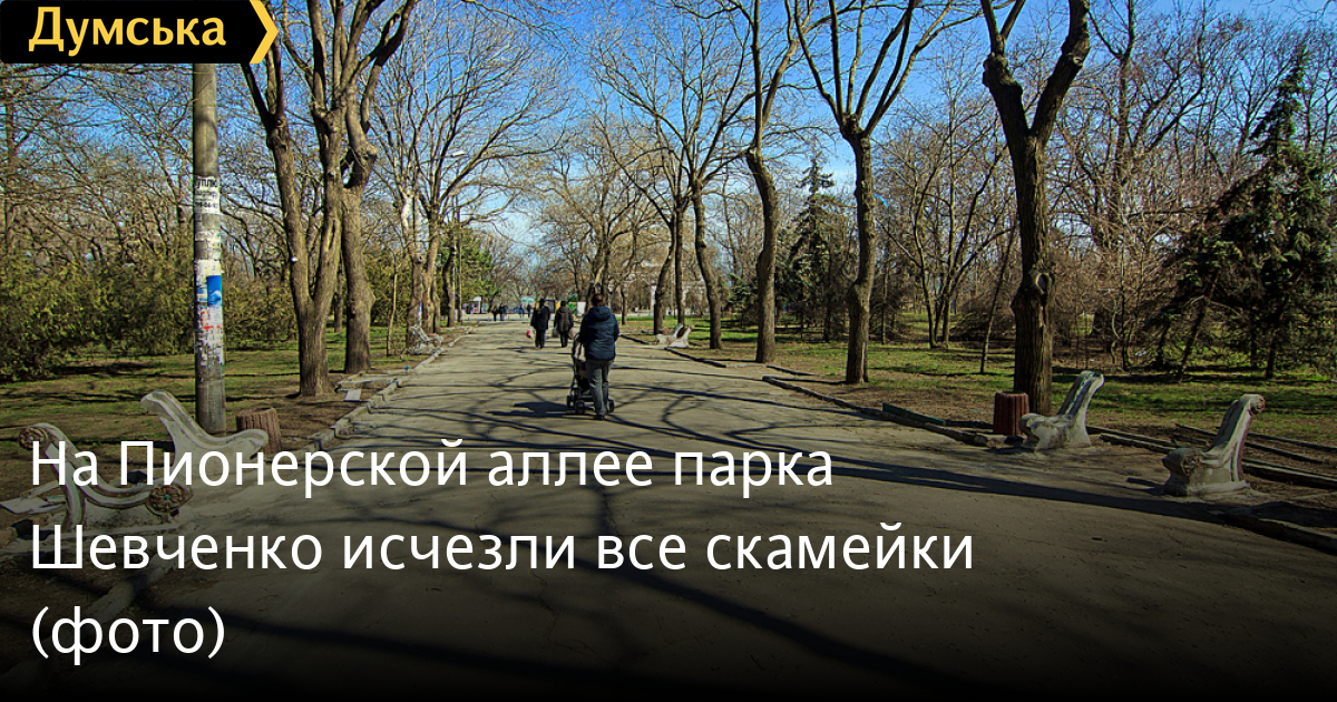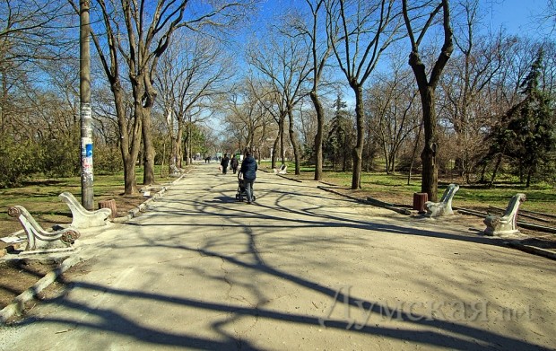 В рамках благоустройства парка Шевченко коммунальщики занялись главной магистралью, по которой отдыхающие, покинув маршрутки и авто, движутся к арке Ланжерона, — Пионерской аллеей. Все скамейки вдоль аллеи лишены своих главных функциональных элементов — того, на чем сидят. Администрация парка заявляет, что это временно.
