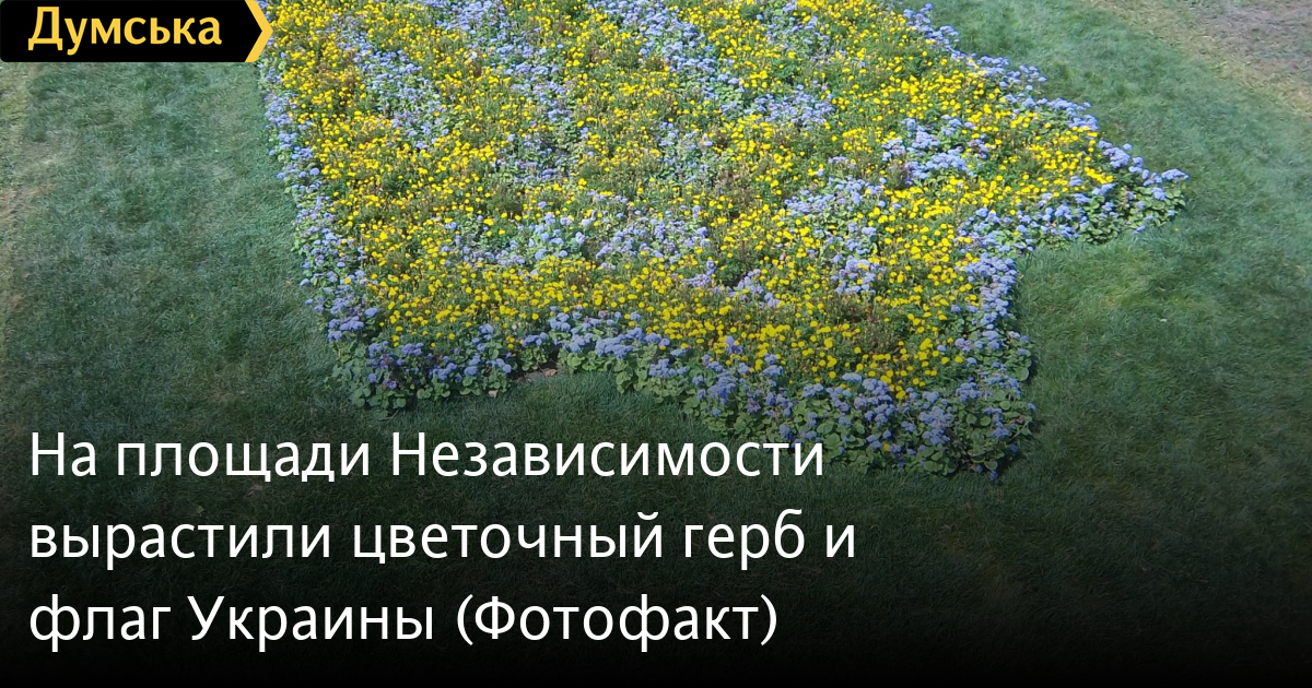 Работники «Горзелентреста» создали цветники с государственной символикой Украины — флагом и гербом. Желто-голубые композиции высадили на площади Независимости. О бщая площадь патриотической клумбы — 65 м2.