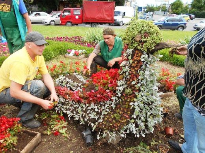 Как сообщает пресс-служба горсовета, сказочную птицу украшают 400 цветов цинерарии, 500 цветов бегонии и 500 - седума. Вокруг топиария высажены цветы сальвии.