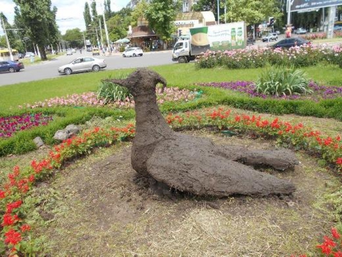 Топиарная фигура «Жар-птица» вернулась на площадь Толбухина в Одессе.