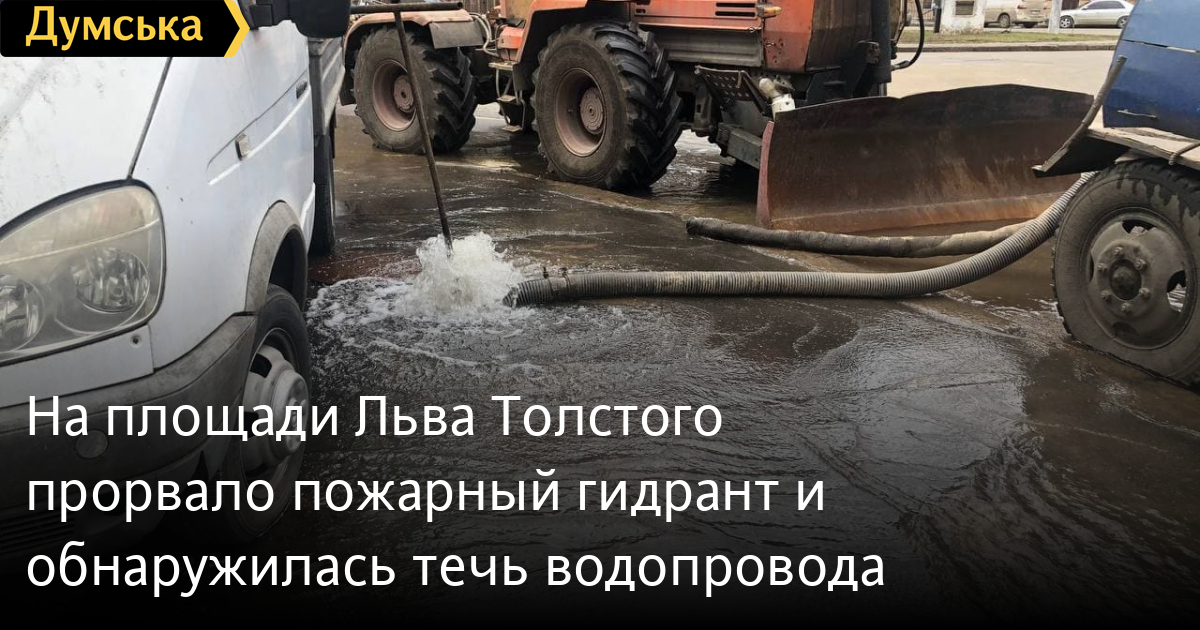 На площади Льва Толстого прорвало пожарный гидрант и обнаружилась течь водопроводаПлощадь Льва Толстого заливает водой, на месте работает ремонтная бригада «Инфоксводоканала». В «Инфоксе» нам сообщили, что там произошел прорыв находящегося в люке пожарного гидранта. Воду должны откачать, остановить течь, после чего проверить состояние гидранта. Также на предприятии заявили, что ночью на площади Льва Толстого обнаружилась течь водопровода. После того, как ремонтники закончат с гидрантом, они займутся решением этой проблемы. Для этого на площадь приехал бульдозер – работы предполагают раскопки дорожного покрытия. Из-за этой аварийной ситуации воду в близлежащих домах пока не отключили. В «Инфоксе» говорят, что необходимость отключения будет понятна после того, как они докопаются до поврежденной трубы. СМЕРТЬ РОССИЙСКИМ ОККУПАНТАМ! Заметили ошибку? Выделяйте слова с ошибкой и нажимайте control-enter |