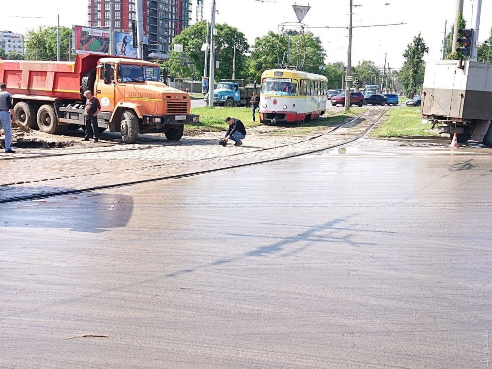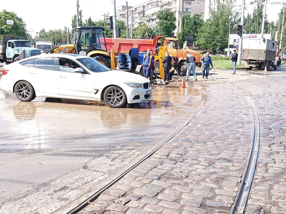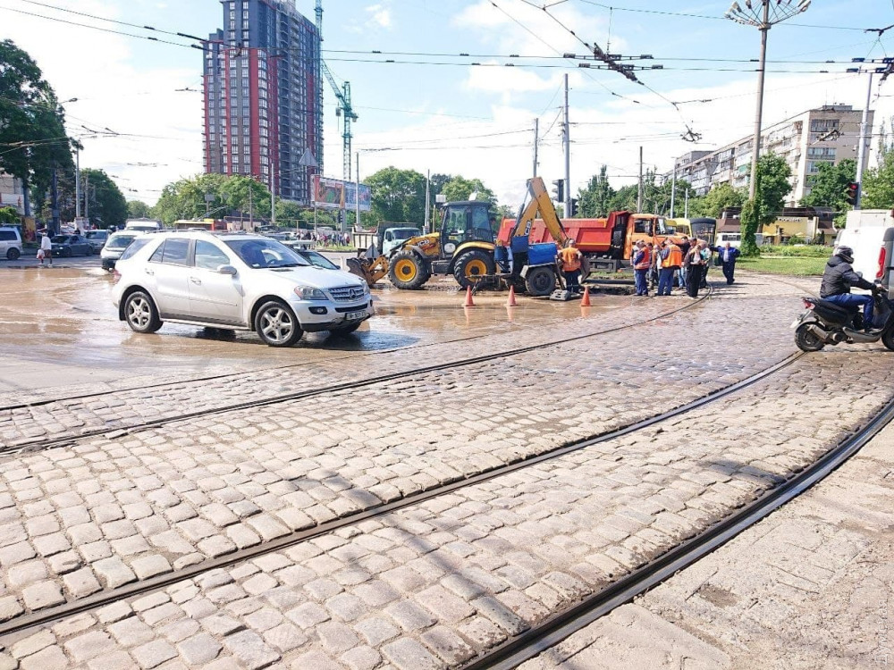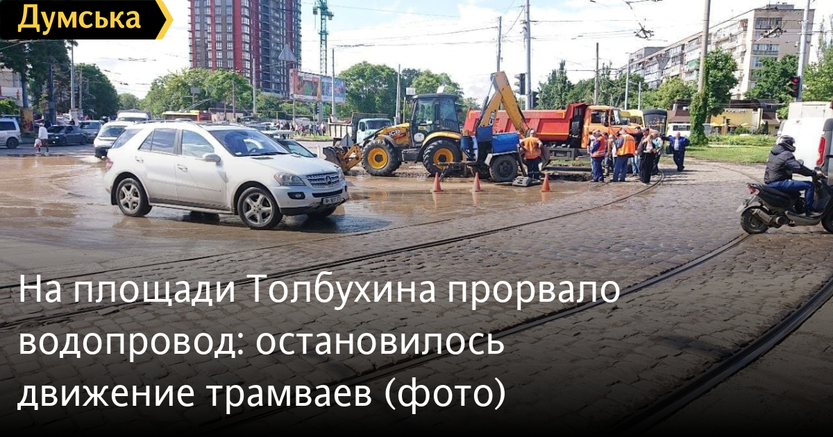 Водопровод прорвало у трамвайных путей на площади Толбухина. Из-за аварии остановилось движение трамвайных маршрутов №3, 13, 26, 27 и 31.