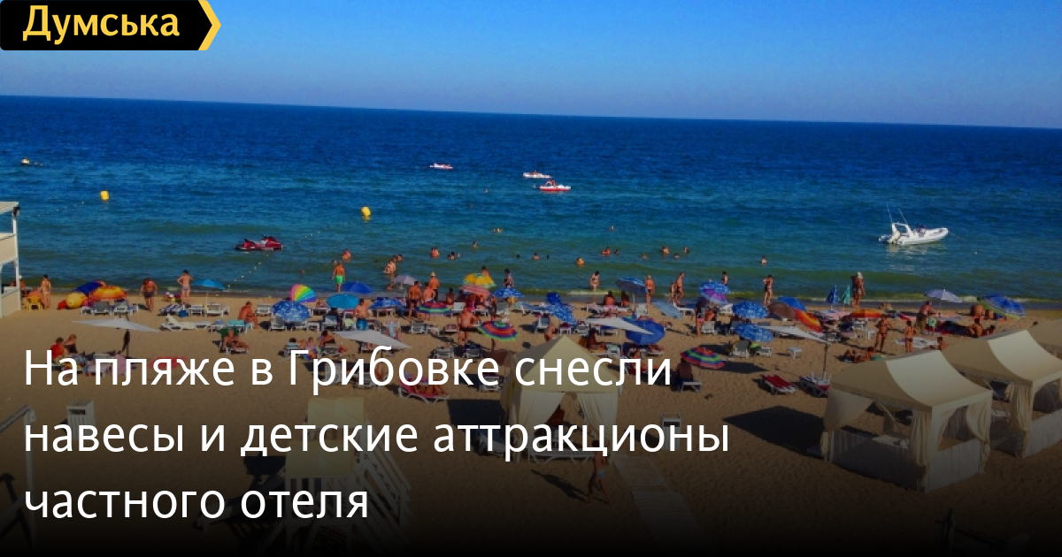 Сотрудники одного из коммунальных предприятий Грибовского сельсовета при участии милиции и работников прокуратуры демонтировали на местном пляже аттракционы, которые представляли опасность для детей, а также незаконно установленные отелем «Ричард» платные навесы и лежаки.