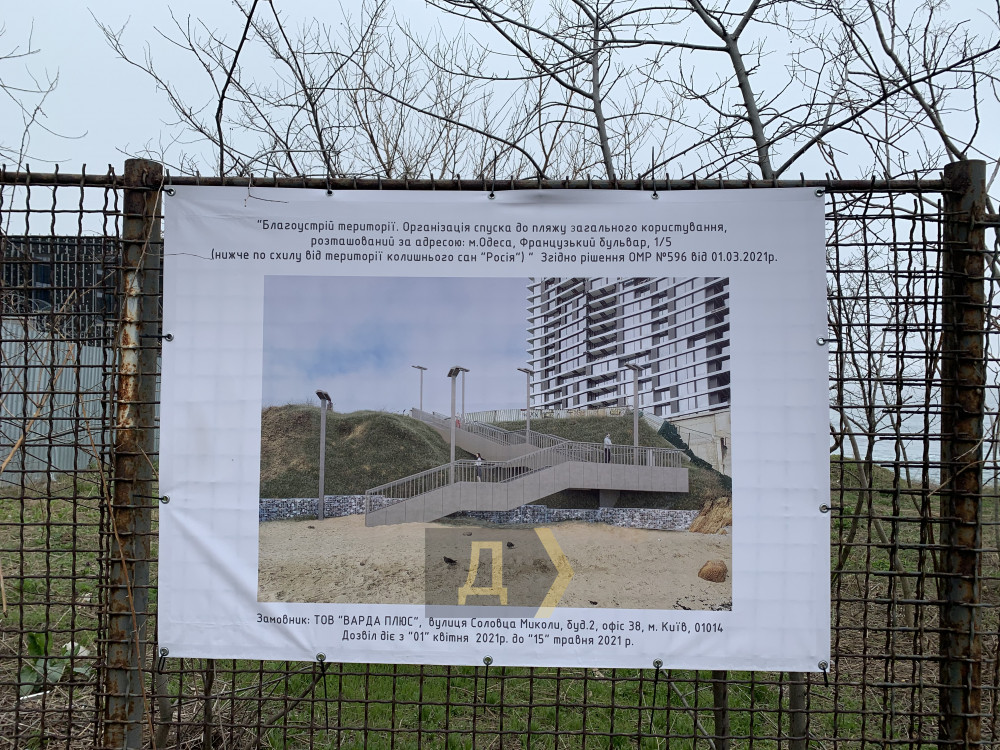 Напомним, два года назад Одесский горсовет передал 68 соток земли на этом склоне в аренду ООО «Варда плюс».