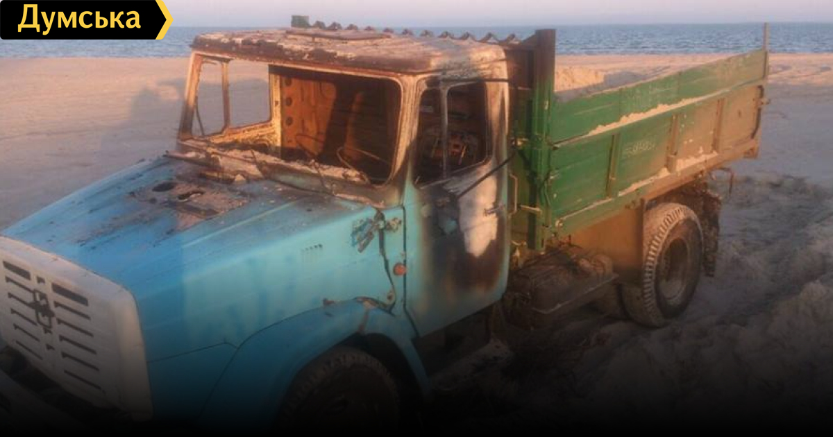 На пляже в Одесской области обстреляли и сожгли грузовик, незаконно добывавший песок