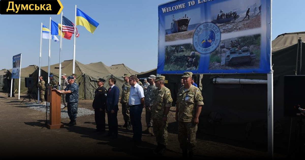 Вчера на общевойсковом полигоне «Широкий лан», что в Николаевской области, стартовала береговая фаза украинско-американских учений «Си Бриз 2015», темой которых является проведение многонациональной операции по безопасности в кризисном регионе. Как сообщили в пресс-центре ВМСУ, на церемонии открытия под звуки национальных гимнов в небо поднялись флаги Украины, США и Республики Молдовы, чьи воинские подразделения привлекаются к береговой фаза, а также знамя Военно-морских сил Украины. Открывали учения командующий ВМСУ вице-адмирал Сергей Гайдук, а также руководители маневров – капитаны первого ранга Алексей Неижпапа и Ричард Дромерхаузер. СМЕРТЬ РОСІЙСЬКИМ ОКУПАНТАМ! Помітили помилку? Виділяйте слова з помилкою та натискайте control-enter Новини по цій темі: 28 червня 2025: Одеський інститут Військово-морських сил випустив молодих лейтенантів флоту: найкращою вперше стала дівчина (фото, відео) 19 червня 2025: Командував обороною Одеси та всього півдня України: Сухопутні війська очолив бойовий генерал-танкіст з американською освітою 30 червня 2025: Жінка на кораблі: одеська курсантка несла вахту на авіаносці і вижила на смузі для «суперменів» (фото, відео) |