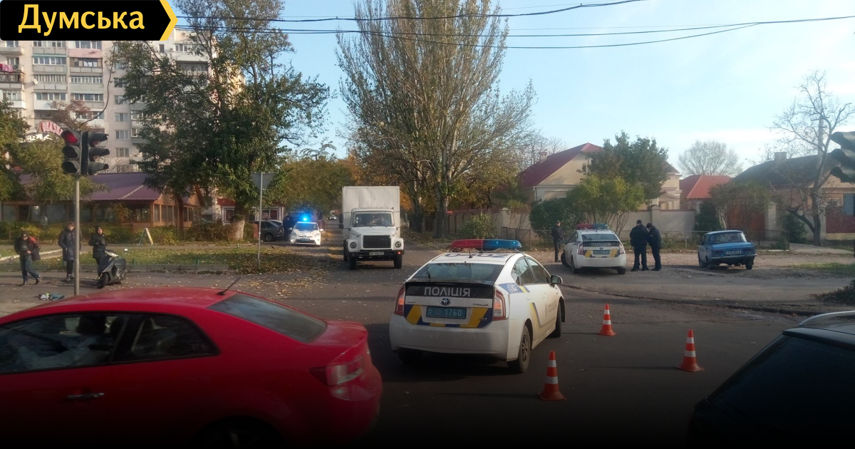 Сегодня днем на перекрестке улиц Добровольского и Кишиневской произошло столкновение мопеда со служебным автомобилем патрульной полиции «Тойота-Приус».