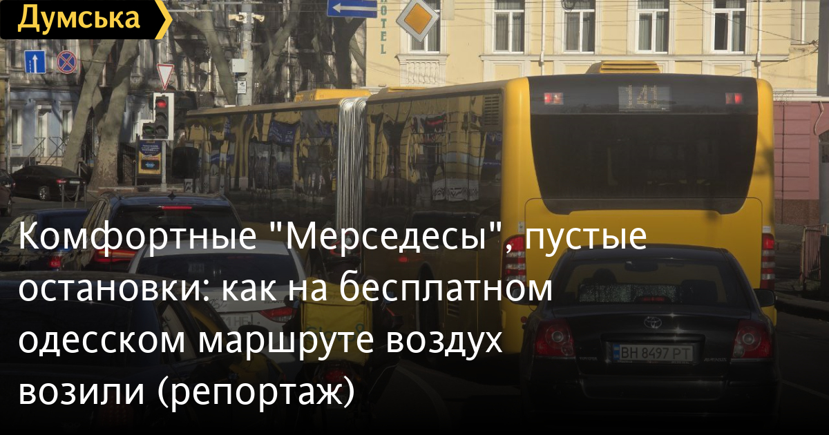Комфортні «Мерседеси», порожні зупинки: як на безкоштовному одеському маршруті повітря возили (репортаж)Новий автобусний маршрут 141, який мав стати рятівною альтернативою для мешканців Пересипського району після зупинки трамваїв, учора стартував із несподіваним ефектом. Комфортні «Мерседеси» їздили майже порожніми, а інтервал руху стрибав від 20 хвилин до півтори години. Виявилося, більшість одеситів навіть не здогадувалися, що проїзд безкоштовний. Журналіст «Думський» протестував маршрут «транспортного порятунку» та ділиться враженнями від поїздки. Завдання у автобусів просте: зв'язати найвіддаленішу частину Пересипського району з центром міста. Рішення кинути у бій гуманітарні «Мерседеси» було озвучено головою міської військової адміністрації Сергієм Лисаком ще тиждень тому. А їхній вихід на маршрут прискорили… російські окупанти, які завдали удару по енергетичній інфраструктурі Пересипського району. Лузанівка та Поскот залишилися без трамвайного сполучення з центром. Спочатку оцінюємо інтервал руху – мерія заявила про 20 хвилин. На перехресті Преображенської та Успенської перший автобус їхав на селище з одним пасажиром, другий – у бік вокзалу – порожнім. Наступний маршрут довелося чекати майже півтори години. У салоні просторо, майже всі написи німецькою, оскільки прибули вони з Регенсбурга. Їдемо плавно та комфортно. Водій гальмує на Грецькій, на зупинці чимало людей, але ніхто не хоче входити. Потенційні пасажири косяться на жовто-помаранчеве диво, хоча на лобовому склі є інформація про схему руху і вказано, що це соціальний маршрут. Водій явно нервує та кричить зі своєї кабіни, що проїзд безкоштовний, громадяни, налітайте. Але ніхто не заходить. Їдемо далі. «Е** ** мать, що за люди, аби гроші платити, перелякані якісь», — не соромлячись висловлює обурення бувалий водій. На наступних зупинках ситуація повторюється. Водій вже не зупиняється скрізь, і ми мчимося з вітерцем, як на величезному таксі. На Пересипу заходять три літні жінки, які радісно воркують, «ось як же добре, що зробили безкоштовний маршрут». Трохи далі входить інтелігентного вигляду літній чоловік із портфелем. На Ярмарковій йому виходити, він стоїть біля центральних дверей і мнеться. Справа в тому, що автобус влаштований так, що для зупинки потрібно натиснути кнопку. Йому кажуть: «Тисніть», але інтелігент сумнівається: — Невже безкоштовно? — Так! — І все-таки може у водія запитати? Жінки починають помітно нервувати. — Та тисніть уже, як ви до такого віку взагалі дожили, — басить колоритна одеситка і вдавлює кнопку напівпудовим кулаком. Інтелігент, злякавшись важкої жінки, випархує з автобуса і швидко залишає зупинку. 141-ий продовжує рух. Несимося назустріч Пересипському району. Десь заходить одна людина, десь три. Якоїсь миті в безмежному салоні набирається до п'ятнадцяти осіб. Усі обговорюють, який хороший маршрут і дивуються: з чого б це і чому нічого не повідомили наперед. Водій апелює до вивіски на лобовому склі. Читати не вмієте? Безкоштовно!», — дивується він і матюкається. На кінцевій, на вулиці 28-ї бригади зупиняємось та дізнаємося у водія подробиці. «У мене свій автобус, працюю на іншому маршруті, але вчора попросили виручити та попрацювати на цьому «чуді», — каже чоловік. — Світла немає, люди без трамваїв залишилися, треба рятувати. Ось і р