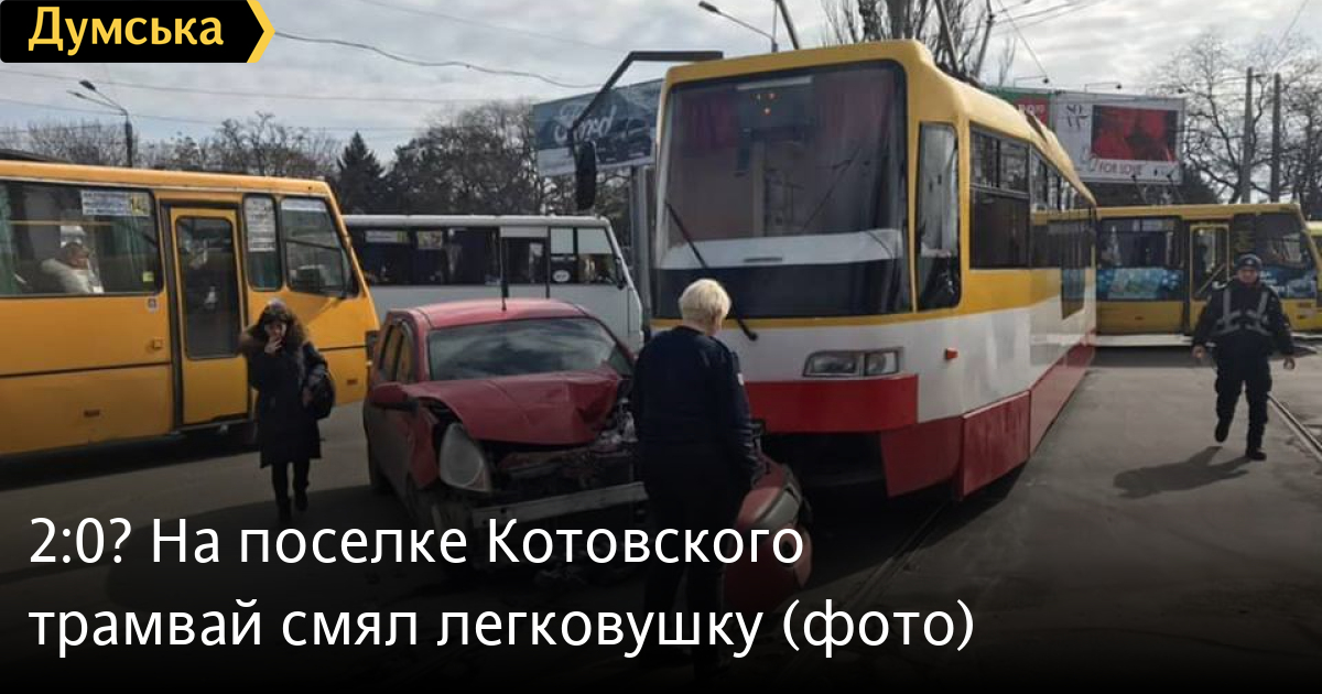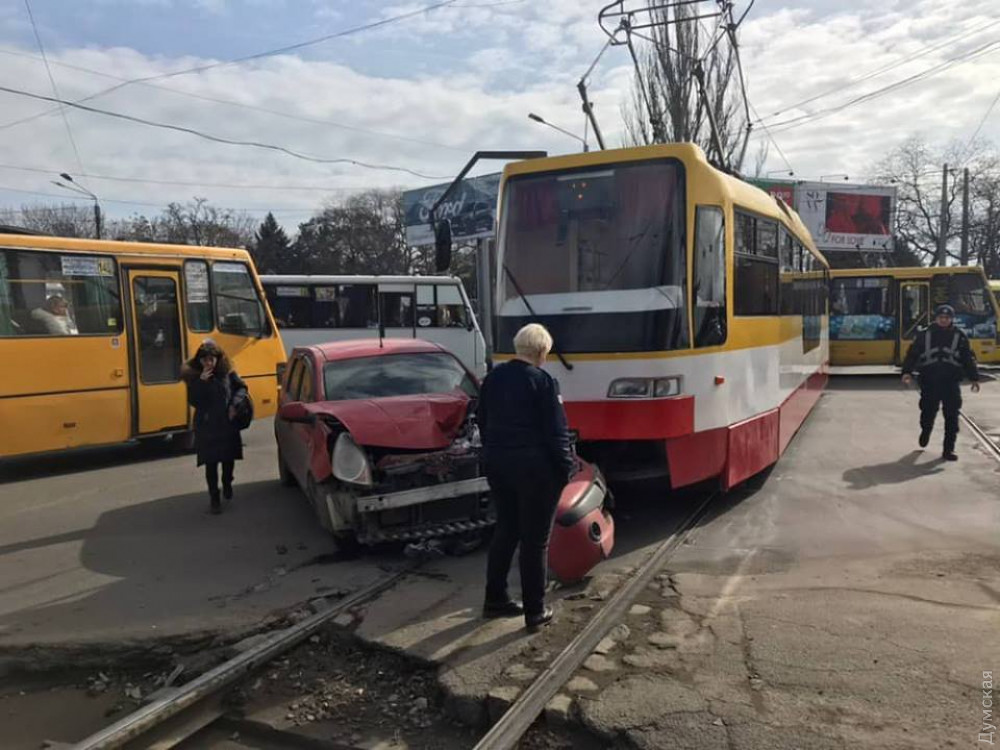 В Одессе попытка автолюбителя проскочить перед двигавшимся в попутном направлении трамваем привела к ДТП.