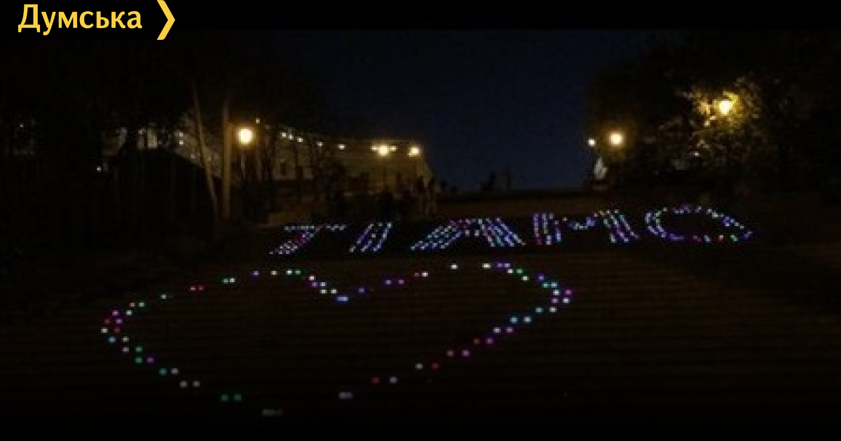 Вчера вечером на Потемкинской лестнице из фонариков выложили сердце и надпись «Я люблю тебя» на итальянском языке. Как сообщают читатели «Думской», надпись было видно даже с морвокзала, откуда ее наблюдал и адресат послания – такой подарок молодому человеку сделала его девушка в честь годовщины. На создание надписи ушло около четырех часов. Фото — читателей «Думской» СМЕРТЬ РОСІЙСЬКИМ ОКУПАНТАМ! Помітили помилку? Виділяйте слова з помилкою та натискайте control-enter Новини по цій темі: 1 квітня 2021: Часть исторического центра Одессы временно перекроют для автотранспорта: Тещин мост снова станет пешеходным 28 січня 2020: Соратники Труханова построят торгово-офисный центр у подножия Потемкинской лестницы: обещают музей (фото) 19 січня 2020: Одесский фуникулер закрывают на ремонт до конца марта 2 вересня 2019: День Города: гала-концерт на Потемкинской (фото, видео) 24 серпня 2019: Вышиванковая цепь в Одессе: рекорд 2016 года пока не побит |