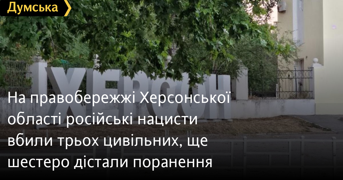 На правобережжі Херсонської області російські нацисти вбили трьох цивільних, ще шестеро дістали пораненняТроє жителів звільнених населених пунктів Херсонської області загинули внаслідок ворожих артобстрілів 17 грудня. Ще шестеро людей отримали поранення. Про це повідомив голова Херсонської обласної військової адміністрації Ярослав Янушевич. Він зазначив, що вчора рашисти 54 рази обстрілювали Херсонську область із мінометів, артилерії, реактивних систем залпового вогню, танків і стрілецької зброї. Укотре під удар потрапили житлові квартали Херсона — пошкоджено приватні та багатоквартирні житлові будинки, медичний заклад. За даними заступника голови Офісу Президента України Кирила Тимошенка, обстріли Херсона тривають 18 грудня. Вранці було поранено трьох жителів міста, один — у важкому стані. СМЕРТЬ РОСІЙСЬКИМ ОКУПАНТАМ! Помітили помилку? Виділяйте слова з помилкою та натискайте control-enter |