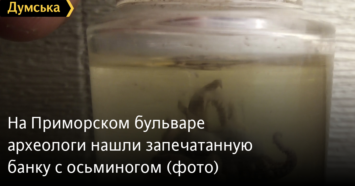 Члены археологической экспедиции, которые раскапывают участок Приморского бульвара рядом с памятником Дюку, чтобы осветить раннюю историю Одессы и найти остатки Хаджибея, нашли под землей маленькую баночку, внутри которой законсервирован осьминог.