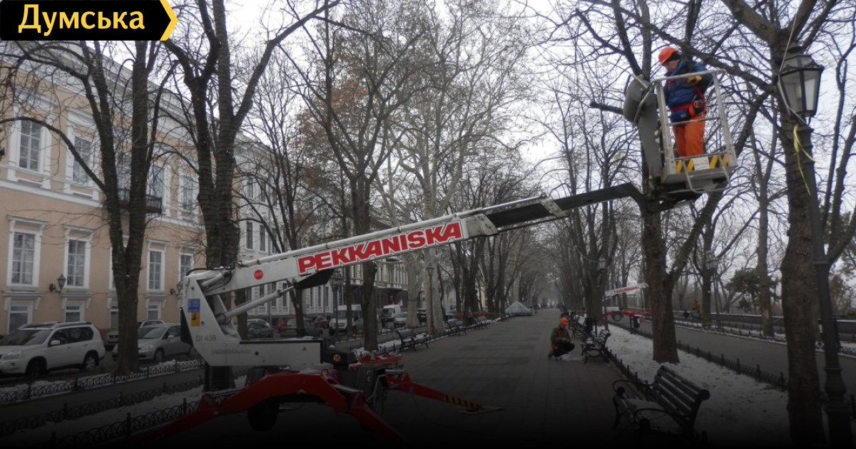 Деревья на Приморском бульваре Одессы продолжают украшать светодиодными гирляндами. Работы планируют завершить ко дню Святого Николая, 19 декабря. Как рассказал «Думской» один из рабочих, на этот раз разноцветными лампочками украсят только часть бульвара – от Дюка до Думской площади. Это порядка 170 деревьев.