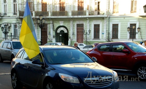После окончания акции участники отправились в автопробег по Одессе под флагами Украины и Евросоюза.