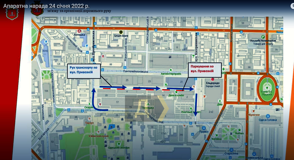 Сейчас разрабатывается временная схема организации движения. Заезжать машины с продовольствием будут с Преображенской, а выезжать — на Екатерининскую.