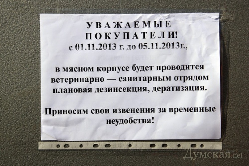 С сегодняшнего дня закрыт Мясной корпус на одесском рынке «Привоз». Как передает корреспондент «Думской», на закрытых дверях висит объявление о том, что в корпусе проводятся «санитарные мероприятия», которые продлятся до 5 ноября. То же самое говорят и в администрации рынка. В то же время, вчера на форумах и в соцсетях появилась информация о том, что с 1 ноября начинается забастовка Мясного корпуса. Причина акции протеста – необоснованно высокие сборы, которые торговцам приходится платить за то, чтобы беспрепятственно реализовывать свой товар. Интернет-пользователи утверждают, что в последнее время поборы были увеличены. Теперь предпринимателям сверх прочего предлагают «отстегивать» гривну за каждый килограмм поступившего мяса. «Это около 35 тысяч гривен в день», — уточняют пользователи. СМЕРТЬ РОСІЙСЬКИМ ОКУПАНТАМ! Помітили помилку? Виділяйте слова з помилкою та натискайте control-enter |