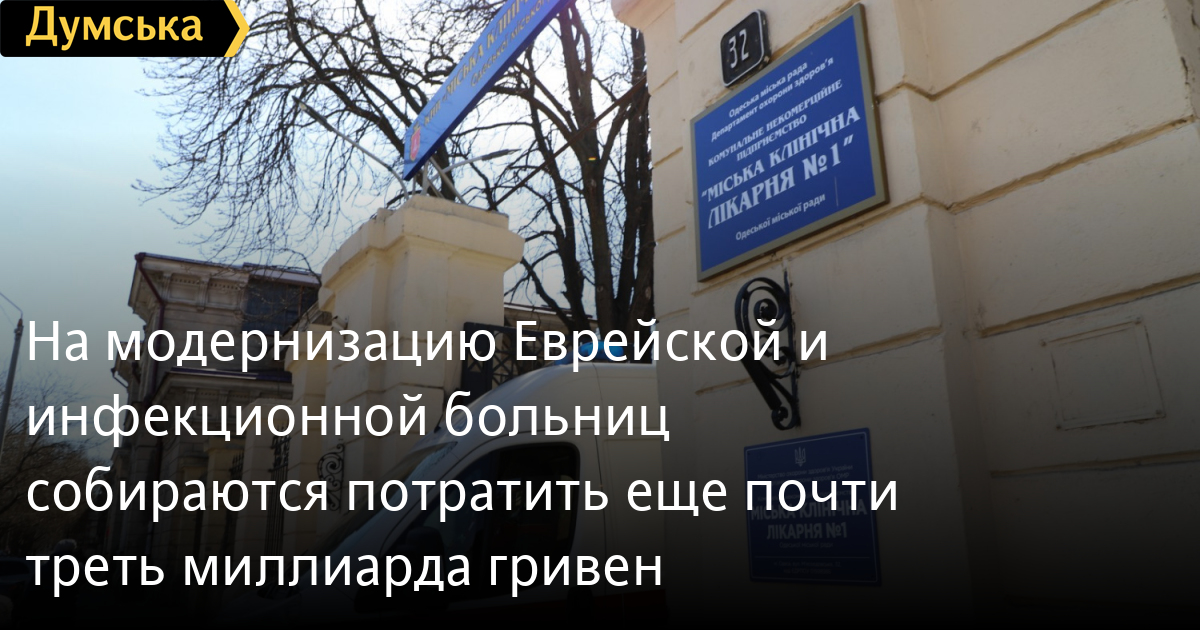 Продолжение реконструкции и модернизации корпусов одесской городской инфекционной больницы и горбольницы №1, известной больше как Еврейская, обойдется в 274 млн 977 тыс. 727 грн.