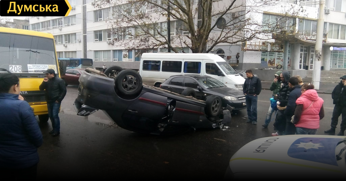 ДТП на 2-ой Фонтана: «Митсубиси» перевернулся, задев маршрутку и «Шевроле»