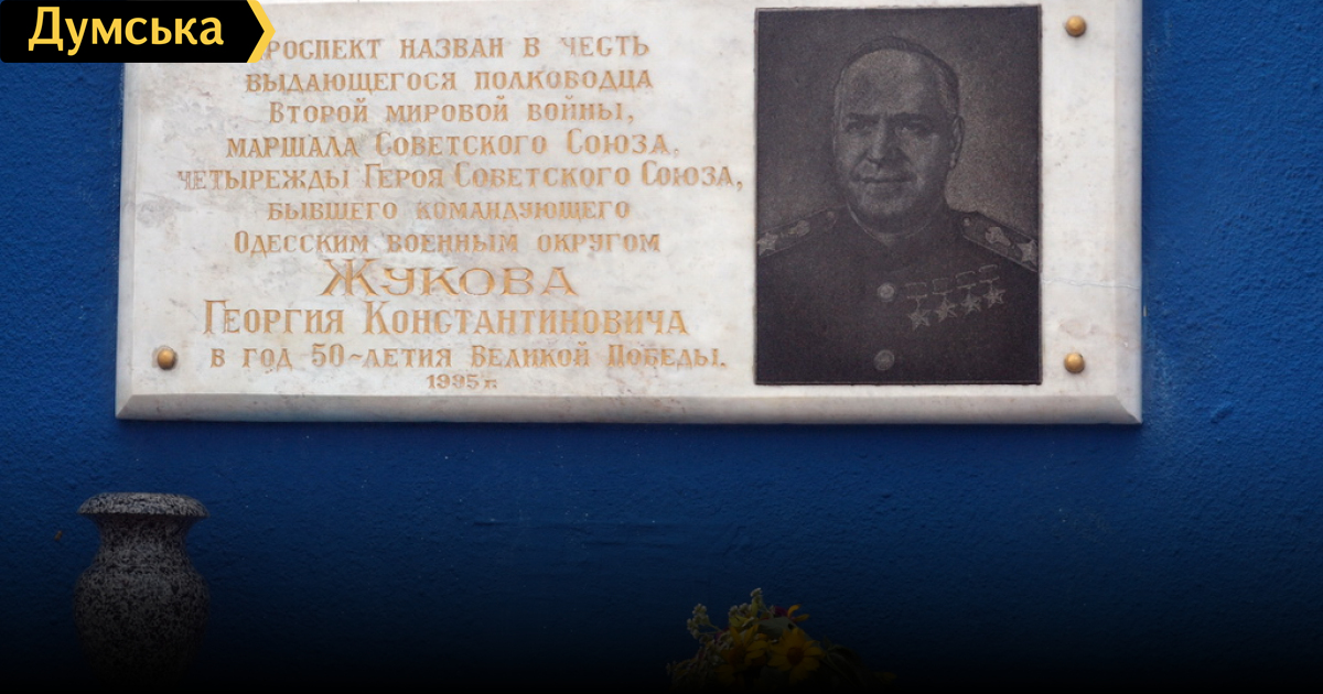 Сегодня утром в Одессе была торжественно открыта восстановленная доска в память о выдающемся советском полководце Георгии Константиновиче Жукове. Мемориальный знак появился на проспекте его имени – на доме №5А.На открытие собрались более сотни одесситов, – преимущественно ветеранов войны, живущих неподалёку. Об этом сообщает корреспондент «Думской».Как отметил председатель совета ветеранов Киевского района Анатолий Клейменов, доска, которая висела на стене дома ранее, пришла в полную негодность. «Мы более трёх лет стучали во все инстанции, чтобы восстановить знак», — сказал он.«Ко мне обратились жители Киевского района с просьбой о восстановлении мемориальной доски. Мы моментально отреагировали и, вот, сегодня — открываем её вновь. Примечательно, что именно 10 июля 1941 года Георгия Константиновича Жукова ввели в состав ставки Верховного Главнокомандования, — сказал заместитель председателя облсовета Алексей Гончаренко.По словам политика, для него это ещё и личная память: «Мой дед начинал свою военную карьеру в 1939 году на Халхин-Голе, а затем всю Великую Отечественную войну воевал под руководством Жукова».Алексей Гончаренко также пообещал сделать всё возможное, чтобы не допустить перевода штаба Южного оперативного командования из Одессы в Днепропетровск. «Штаб округа — это такая же неотъемлемая часть Одессы, как Оперный театр, Дерибасовская», — считает он.Выступавшие на митинге ветераны отметили выдающуюся роль полководца в Великой Отечественной войне, вспомнив о его руководстве обороной Ленинграда, остановке немецкого наступления под Москвой, Сталинградскую битву, взятие Берлина и другие операции. Кроме того, в одном из выступлений была затронута и одесская тематика — история о том, как Жуков, будучи командующим Одесским военным округом, направил свои личные средства на строительство детского садика.