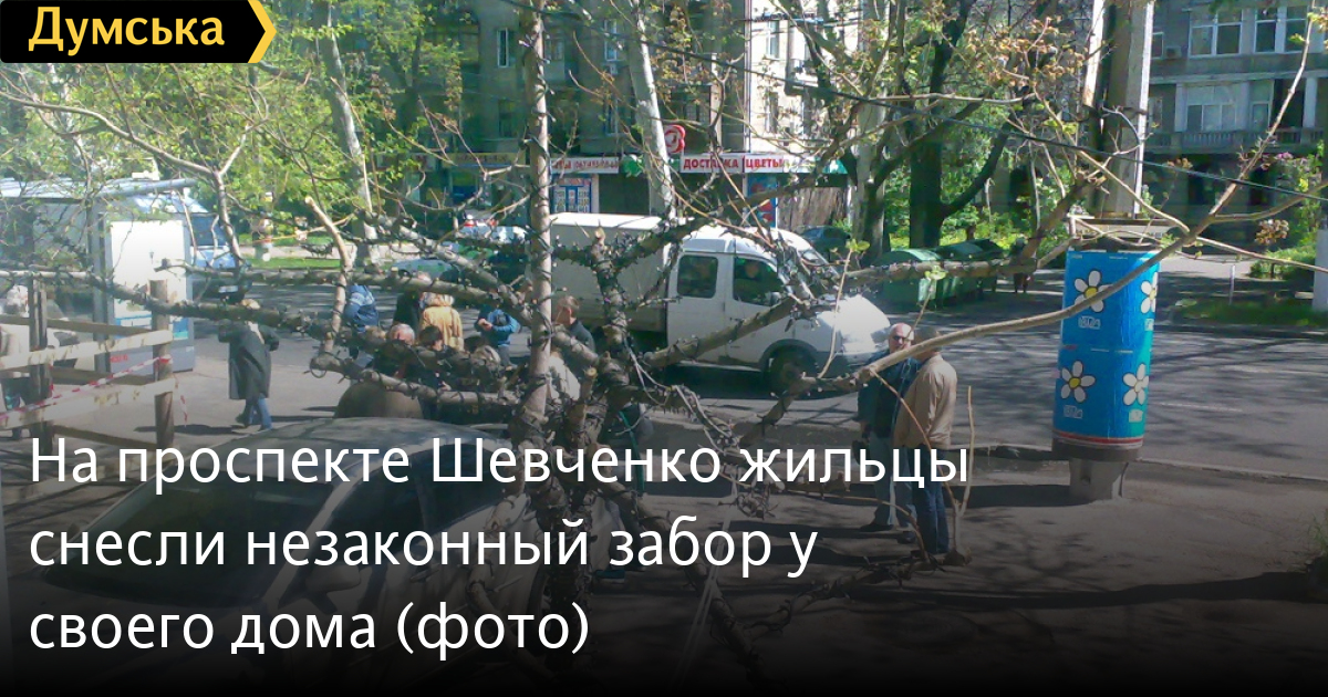 Возмущенные жильцы дома №6/2 по проспекту Шевченко снесли незаконную, по их мнению, конструкцию около дома. Деревянное ограждение, по рассказам местных, внезапно появилось около фасадной части дома и практически «залезло» на ближайшую троллейбусную остановку.