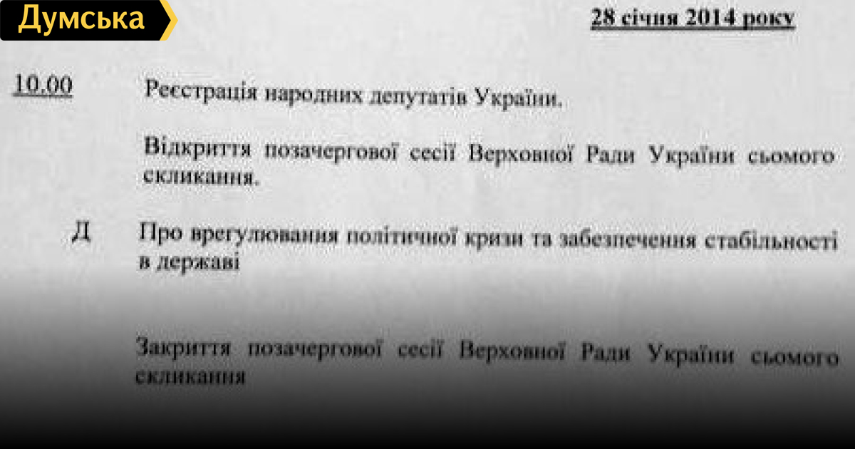 Единственный вопрос, вынесенный на рассмотрение Верховной Рады 28 января, — урегулирование политического кризиса в стране. Соответствующую повестку дня в «Твиттере» обнародовал журналист Сергей Андрушко. Как известно, сегодня Рада собралась на внеочередную сессию. Ожидается, в частности, что депутаты отменят скандальные законы, принятые 16 января. Заседание началось с минуты молчания. Депутаты почтили память погибших в ходе столкновений. Тем временем возле здания парламента проходит митинг сторонников Партии регионов. В Конституционном переулке установлена сцена с символикой ПР и играет музыка. На улице Грушевского протестующие вместе с пожарниками тушат остатки шин, некоторые активисты несут дежурство на баррикадах. В настоящее время действует перемирие, столкновений нет. СМЕРТЬ РОСІЙСЬКИМ ОКУПАНТАМ! Помітили помилку? Виділяйте слова з помилкою та натискайте control-enter |