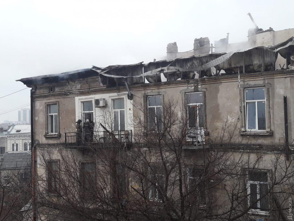 В результате сегодняшнего пожара в доме №11 на Ришельевской улице огнем повреждены две квартиры, а еще 11- залиты водой. Кроме того, взрывной волной выбиты окна.