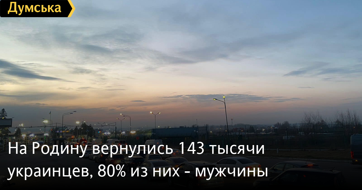 С начала полномасштабного вторжения в Украину вернулись 143 тысячи человек, 80% которых — мужчины.