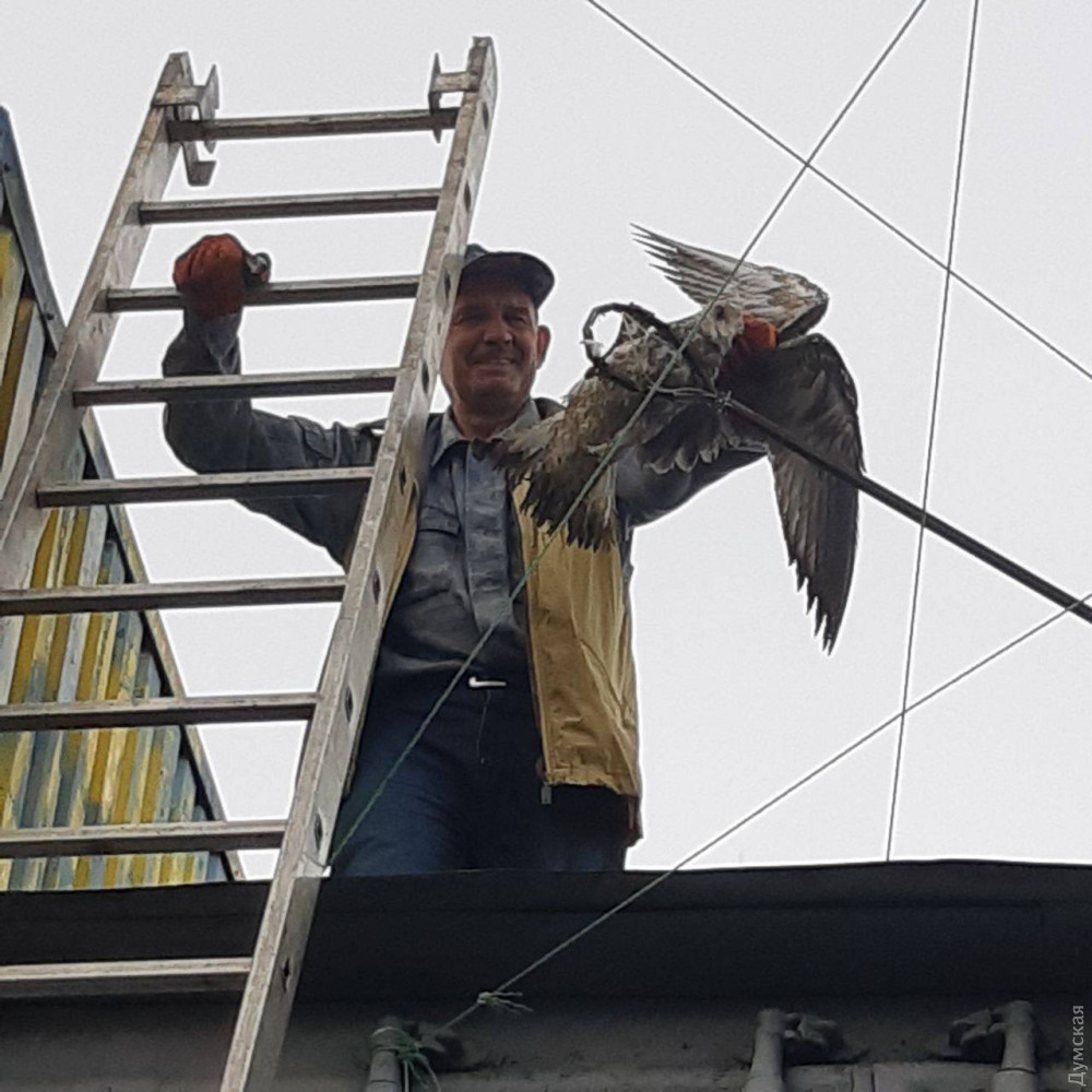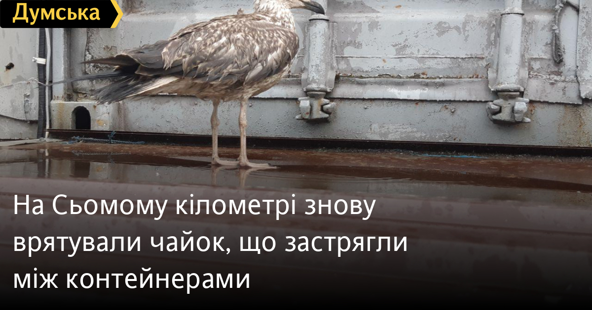 Співробітники промтоварного ринку «Сьомий кілометр» вдруге визволили чайок, які застрягли між контейнерами, в яких розташовані торгові павільйони.