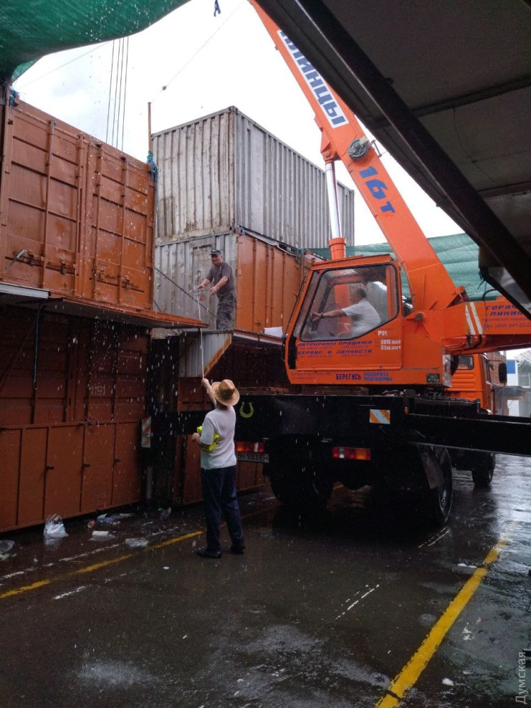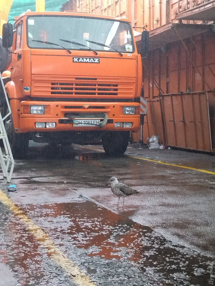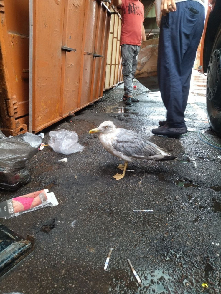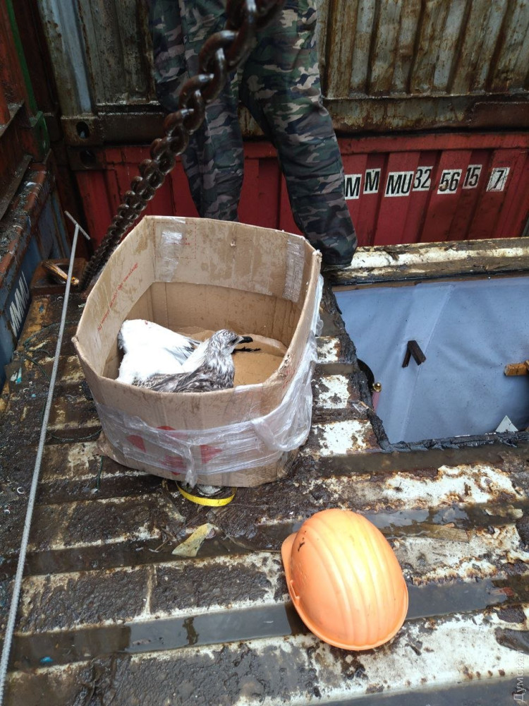 Ремонтна бригада промтоварного ринку «Сьомий кілометр» провела рятувальну операцію та визволила чотирьох чайок, які вчора застрягли у щілині між двома контейнерами, в яких розташовані магазини.