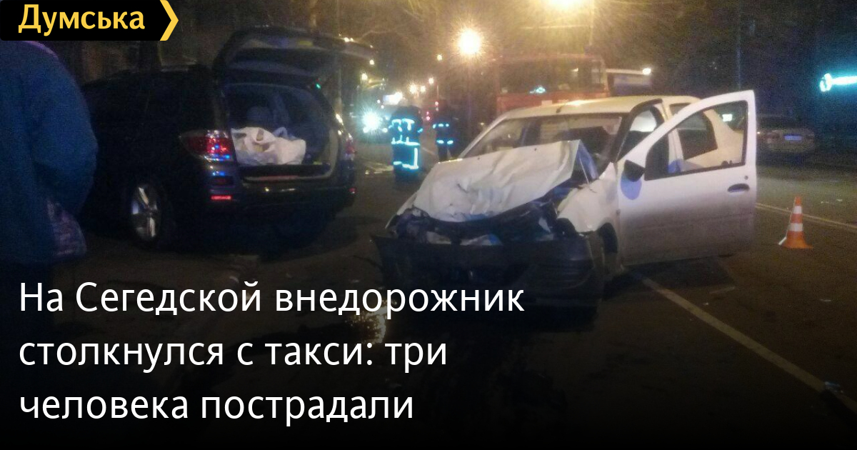 Серьезное ДТП произошло вчера в 22:50 на пересечении Сегедской и Лунного переулка. Как сообщили в пресс-службе патрульной полиции, ударились автомобиль «Тойота» и такси «Рено». После удара «Тойота» врезалась в столб и загорелась. На место вызвали пожарных. В результате аварии госпитализировали троих человек — водителя и пассажира «Рено», а также пассажира «Тойоты». В причинах ДТП разбирается следствие. СМЕРТЬ РОССИЙСКИМ ОККУПАНТАМ! Заметили ошибку? Выделяйте слова с ошибкой и нажимайте control-enter |