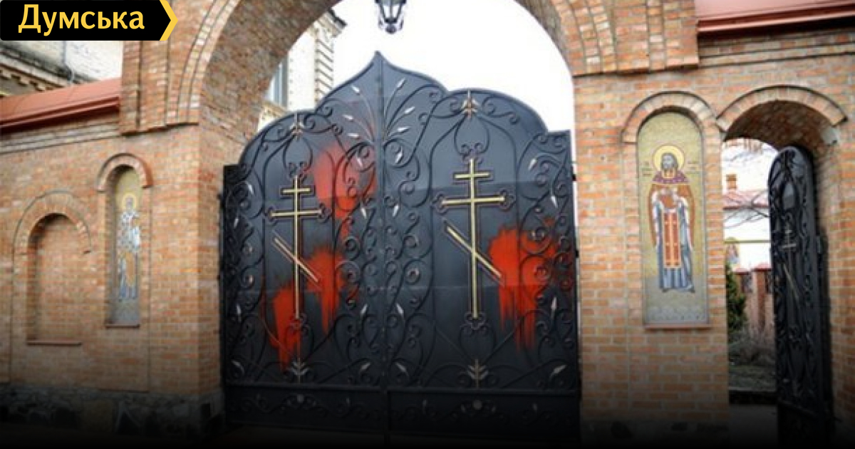 На севере Одесской области неизвестные облили красной краской ворота монастыря Московского патриархатаКрасной краской облили неизвестные ворота Свято-Покровского Феодосиевского мужского монастыря Московского патриархата, что на севере Одесской области. Инцидент произошел в ночь на 15 марта, сообщили «Думской» местные жители. Монастырь расположен в городе Балта и относится к местной епархии УПЦ МП. Хулиганов так и не нашли. СМЕРТЬ РОСІЙСЬКИМ ОКУПАНТАМ! Помітили помилку? Виділяйте слова з помилкою та натискайте control-enter |