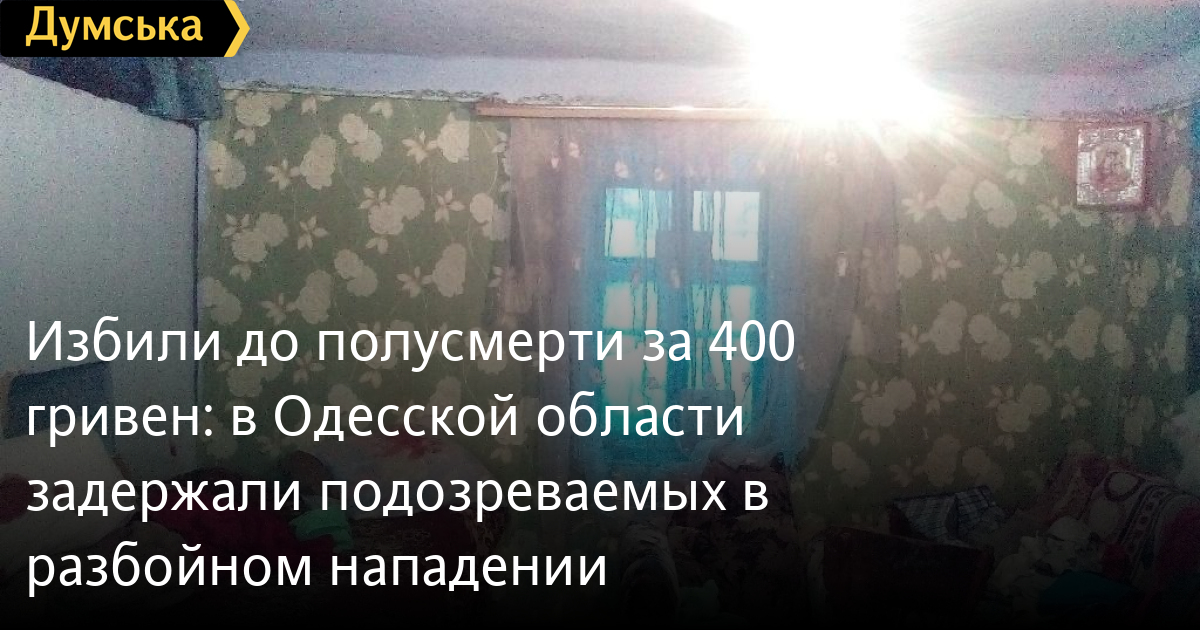 Избили до полусмерти за 400 гривен: в Одесской области задержали подозреваемых в разбойном нападенииРазбойное нападение произошло в минувшие выходные в селе Павловка Арцизского района области. Как сообщили в пресс-службе ГУНП, около двух часов ночи двое злоумышленников избили хозяев до беспомощного состояния, забрали 400 гривен и телефон, а после скрылись в неизвестном направлении. Придя в себя, пострадавшие обратились за помощью к соседям, а те вызвали полицию. Разглядеть лица нападавших хозяева не успели, но полицейским удалось установить личности злоумышленников и задержать их. Ими оказались местные жители 27 и 28 лет. Подозреваемые признались в содеянном и отдали награбленное. СМЕРТЬ РОССИЙСКИМ ОККУПАНТАМ! Заметили ошибку? Выделяйте слова с ошибкой и нажимайте control-enter |