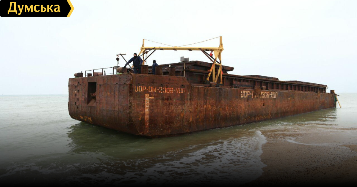 Баржу несколько часов мотало по морю, пока не выбросило на пляж в Черноморске — у причала №121. Местные жители рассказали «Думской», что это произошло примерно в 15:45. При этом села баржа не очень крепко и продолжала двигаться, разрушая частные причалы.