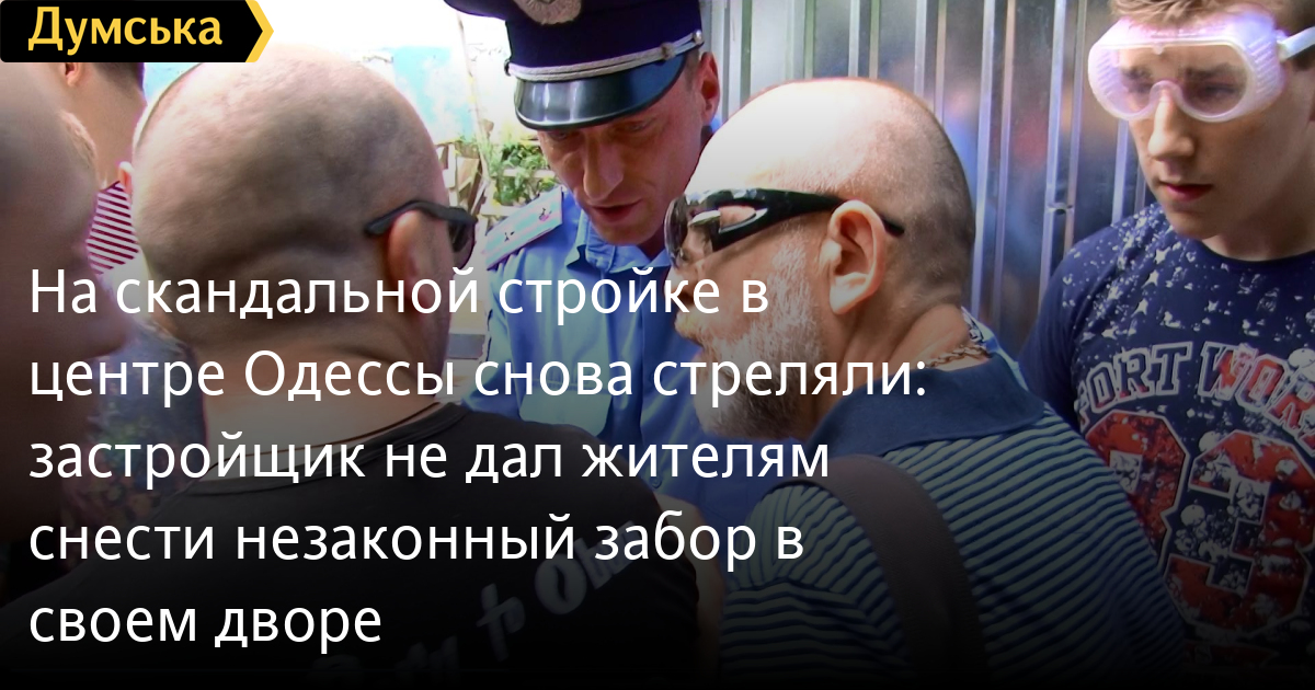 Как сообщает наш корреспондент, мирная акция жителей дома, которые протестовали против возведения нахалстроя, попытались своими силами снести забор, незаконно установленный прямо у них во дворе. На снос забора есть соответсвующее предписание из горсовета. Но у застройщика на такие действия свое мнение: охранники стройки из агентства «Олимп-ЮГ» вновь применяли оружие и не дали ликвидировать строение.