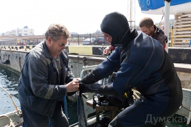 Этим материалом «Думская» открывает новый цикл, посвященный одесситам, которые выполняют самые тяжелые и неблагодарные, но очень и очень нужные работы. Сегодня мы расскажем о людях, без которых невозможно нормальное функционирование нашего порта. И это не таможенники :) Речь пойдет о водолазах. Именно они контролируют подходные каналы, защитные сооружения, осматривают заходящие суда на предмет подводных повреждений, устраняя поломки. Порой покорителям глубин приходится трудиться в по-настоящему экстремальных условиях. С людьми мужественной профессии общалась Надежда Маркевич.