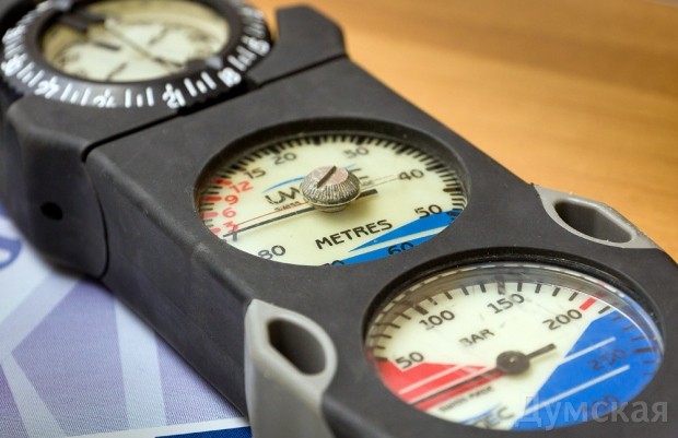 На морвокзале утро подходит к концу. Малолюдно. Издалека доносятся гудки буксиров и стук отбойного молотка, а уже пригревающее солнышко заставляет щуриться и натягивать на лицо очки. Тонированные стекла окрашивают в черно-белый цвет весь наш путь вдоль левого причала – катерок «Севастополь», дышащие на ладан земснаряды, легендарный катамаран «Хаджибей» Водолазная служба обосновалась в небольшом офисе возле яхт-клуба. Нетрудно догадаться, что хозяева помещения связаны с подводным миром: их выдают развешанные в разных уголках гидрокостюмы, столы, заваленные картами, фотографиями и путевыми листами, и выглядывающий из-под бумажных гор медный шлем. Он был изобретен еще в XIX веке, но используется по сей день.