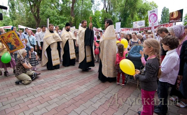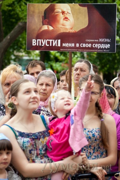 А может быть вместо этой показушной мольбы против абортов, молились бы лучше о том, чтобы обеспечить молодым семьям нормальное жильё, любимую работу по специальности и достойную зарплату, об отсутствии очередей и взяток в переполненных детских садах, о поборах в школах, о бесплатном высшем образовании, о недорогих детских лекарствах и памперсах, а зачислении в стаж материнского декрета, об уменьшении пенсионного возраста для родителей, об инфраструктуре детской медицины, о доступных детских спортивных секциях и об уменьшении аппетитов олигархов и церковных спонсоров???
