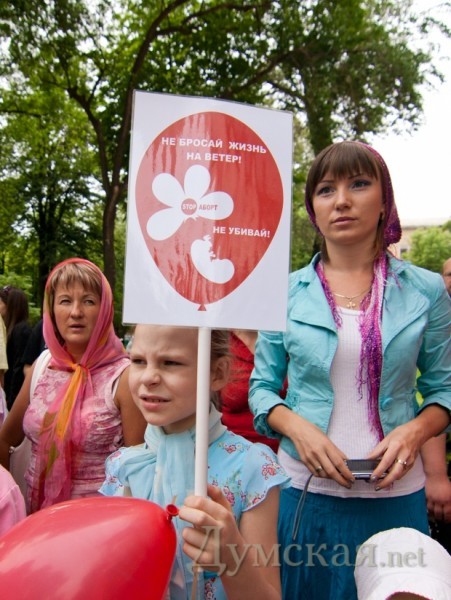 вообще-то 1) с точки зрения религии жизнь появляется с момента первого вздоха. 2) я бы вел речь об абортах «по согласию сторон» т.е. аборты как способ планирования семьи- ужасен, (умышленное, халатное, небрежное) доведение до состояния при котором требуется аборт, это действительно должно быть резко осуждаемо обществом. 3) но все остальные варианты аборта не должны быть осуждаемы, сюда попадают и медицинские показания. 4) привлекать малолетних детей для пиара такого рода также недостойно, т.к. они не понимают о чем речь..