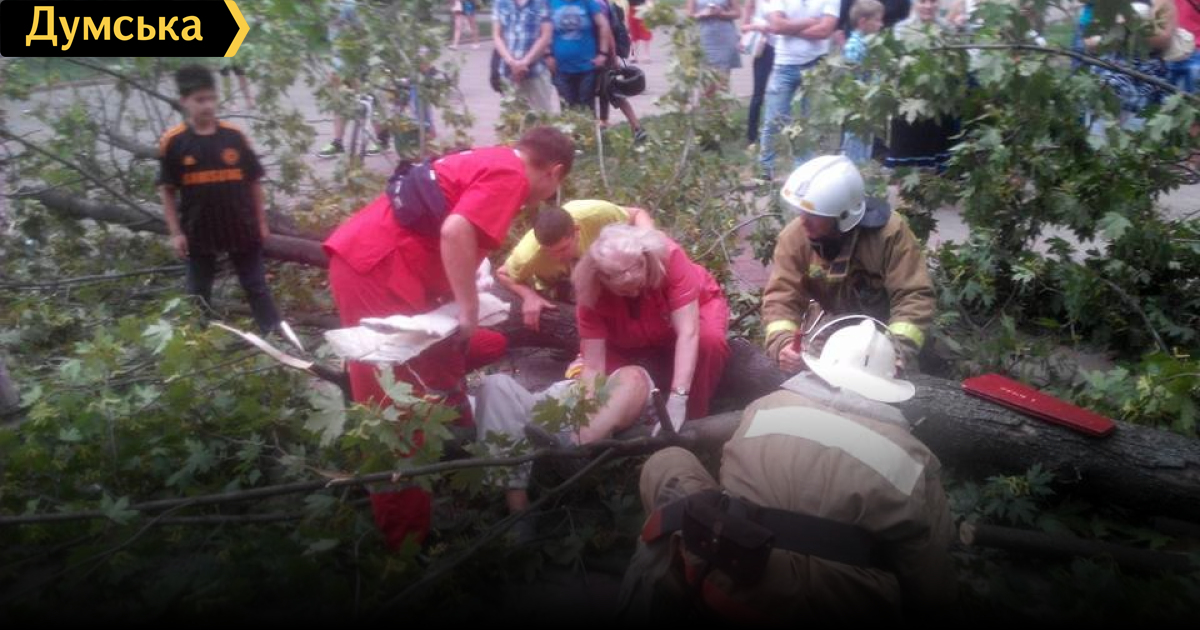 В центре Одессы рухнувшее дерево придавило мужчину, а другое разрушило летнюю площадку