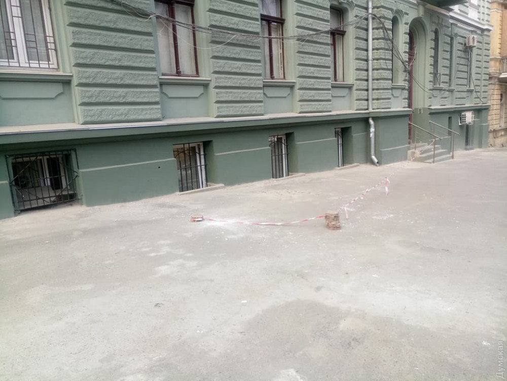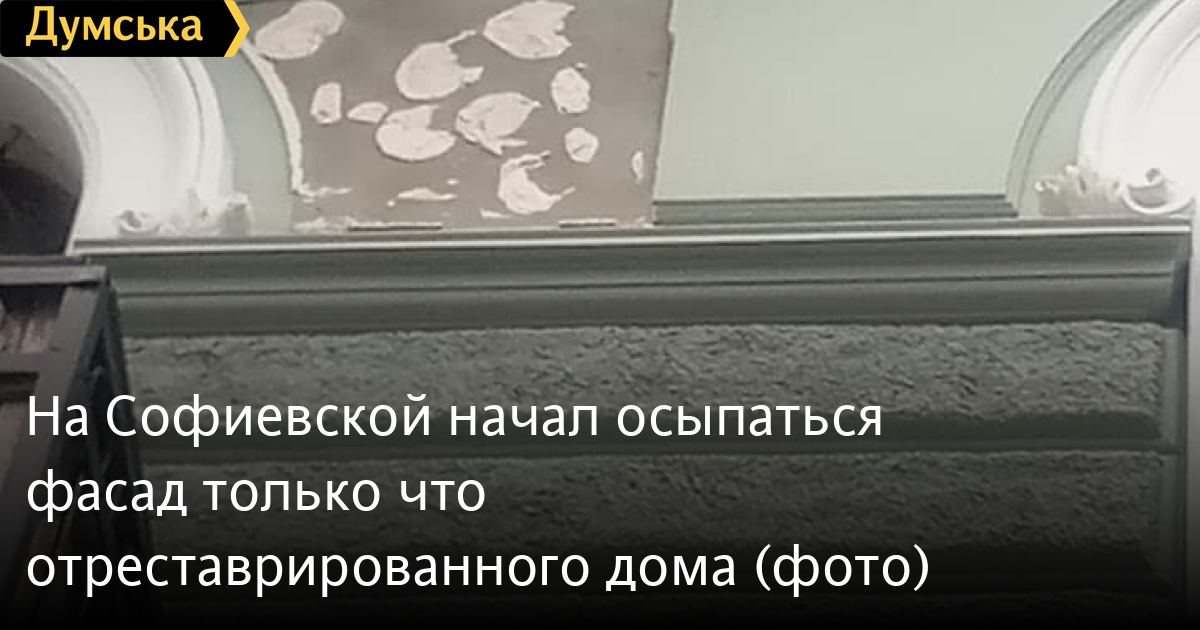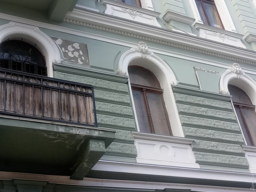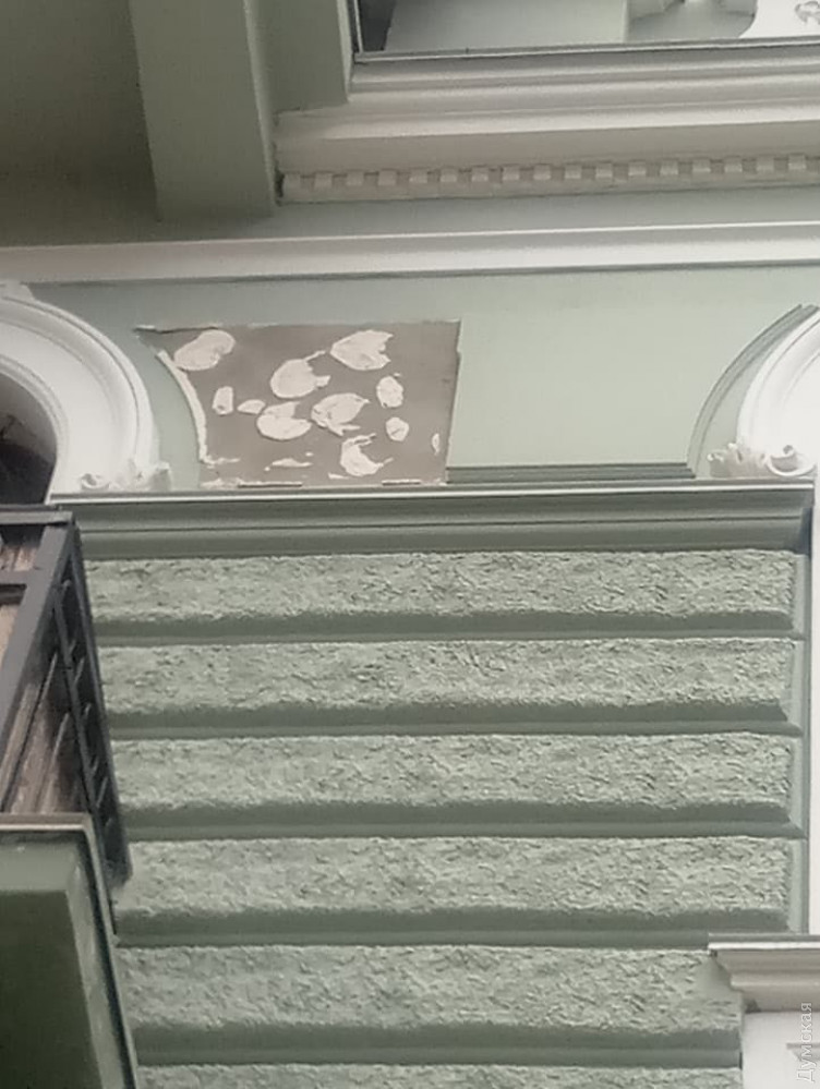 Только что отреставрированный за бюджетный счет памятник архитектуры — дом №13 по Софиевской, уже осыпается.