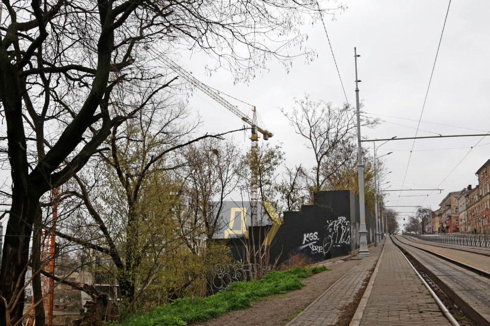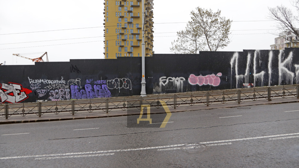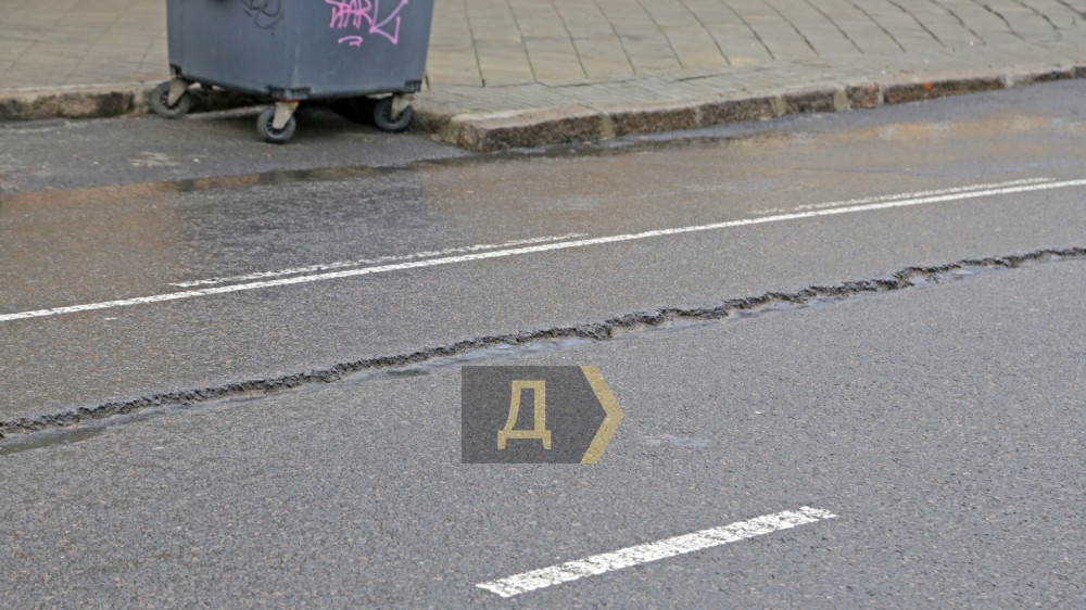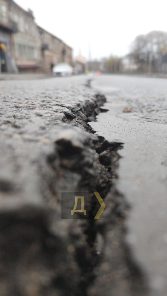 На проезжей части улицы образовалась трещина, а участок, прилегающий к рельсам, немного наклонился в сторону стройплощадки, находящейся за высоким забором — там роют котлованы и забивают сваи для будущих домов «Пространства».